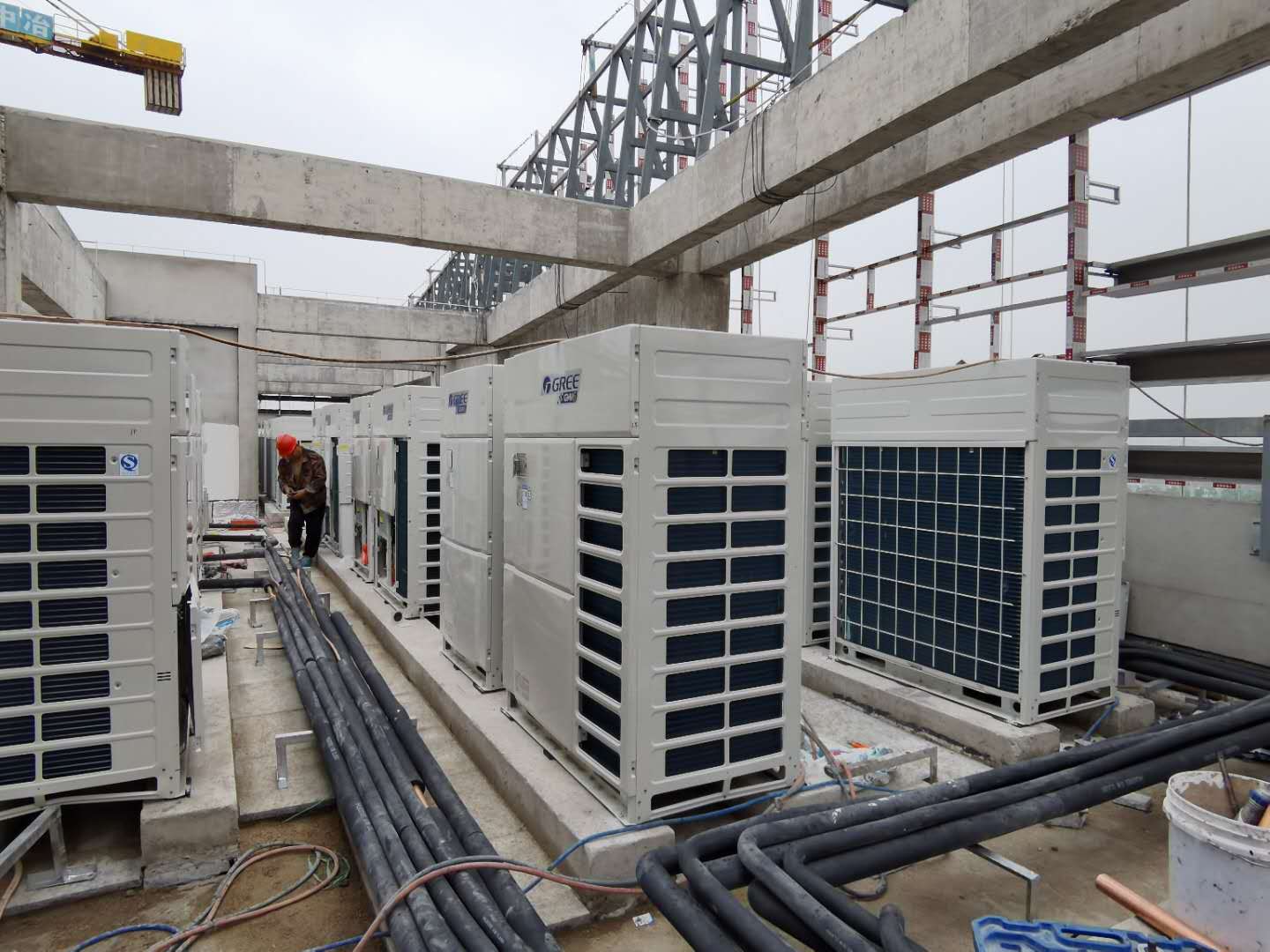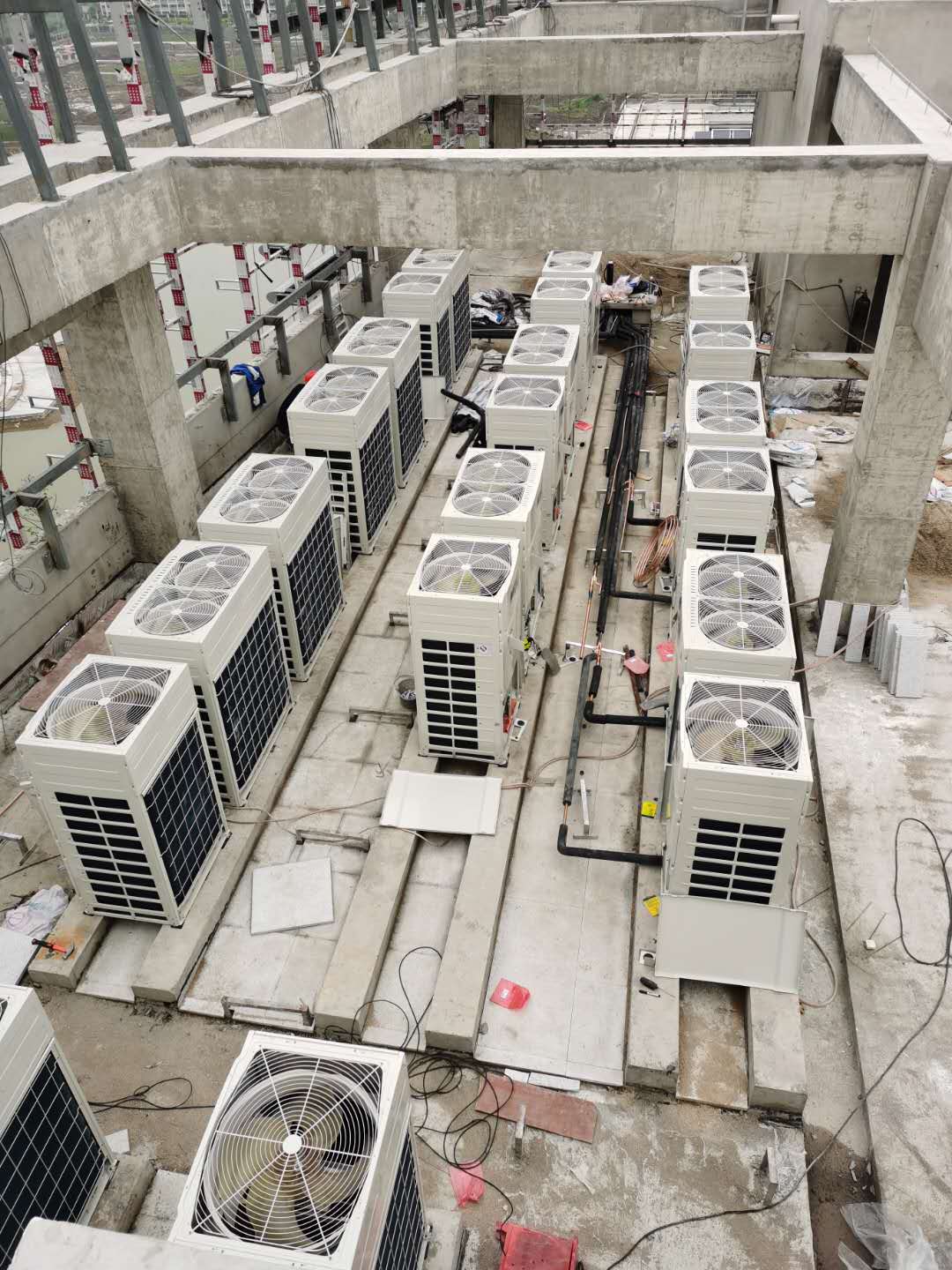 日前,筆者在施工現(xiàn)場(chǎng)看到,由公司負(fù)責(zé)的36臺(tái)套直流變頻多聯(lián)式空調(diào)機(jī)組室外機(jī)己吊裝、安裝到位。項(xiàng)目部全體參建人員紛紛表示,在總包單位的統(tǒng)一組織領(lǐng)領(lǐng)導(dǎo)下,一定能按期完工,交出一個(gè)讓業(yè)主滿意的合格答卷。